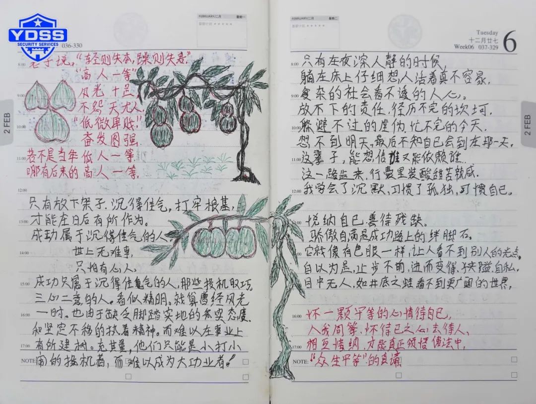 任长周同志深知:自己文化程度不高,就把看书学习作为自己度过业余时间主要的内容,先后阅读了日本作家(企业家、哲学家)稻盛和夫关于人生哲学的等书籍。并记录一些读书笔记,抄写着自己喜欢的唐诗和格言警句,偿试着自己编写的一些“小诗”。作为自己的人生感悟和励志语言。比如:“成功常在辛苦日,败事多因得意时”,“不顾大局,就会出局:大局为重,不计小利”等激励自己,努力提高自己思路觉悟和业务水平。