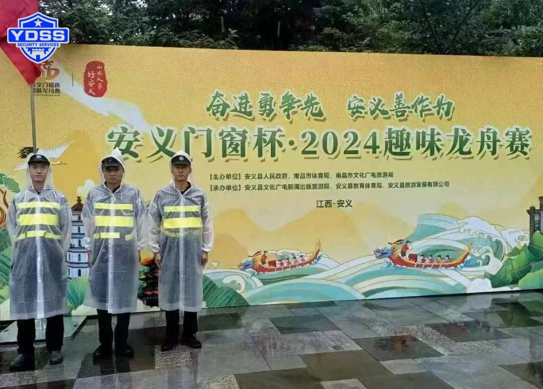 尽管天公不作美,阴雨连绵,南昌分公司的安保人员全部提前到岗,任由雨水、汗水浸湿衣衫,始终以饱满的精神状态护航赛事,确保赛事期间安全零事故,为本次龙舟赛增添了一抹最美的“安保景色”。