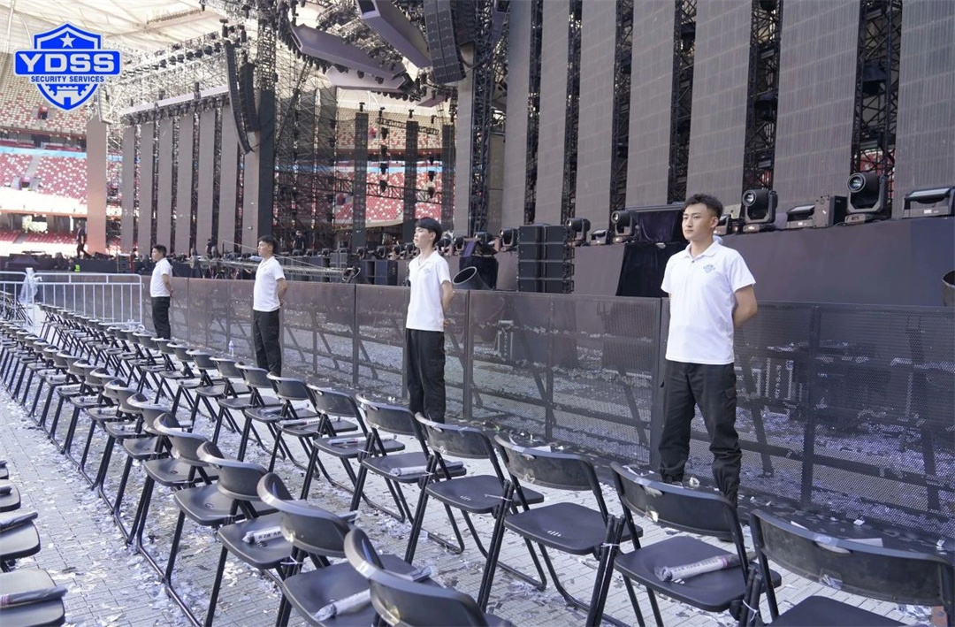 公司安保人员按照原定方案,对各个出入口设置通道关卡,以确保观众们能够有序的进场,避免无关人员进入现场。面对粉丝活跃、互动频繁、观众情绪高涨,迎难而上,认真完成各项安保工作措施,安全责任落实到人。