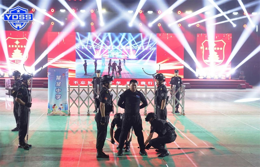 在素质展示环节,北京永兴集团yx06保安服务有限公司等5家保安公司分别表演了格斗术、安检集体操、警棍盾牌术、防爆队形演练和突发情况处置演练,充分展现了首都保安安保战术技能。